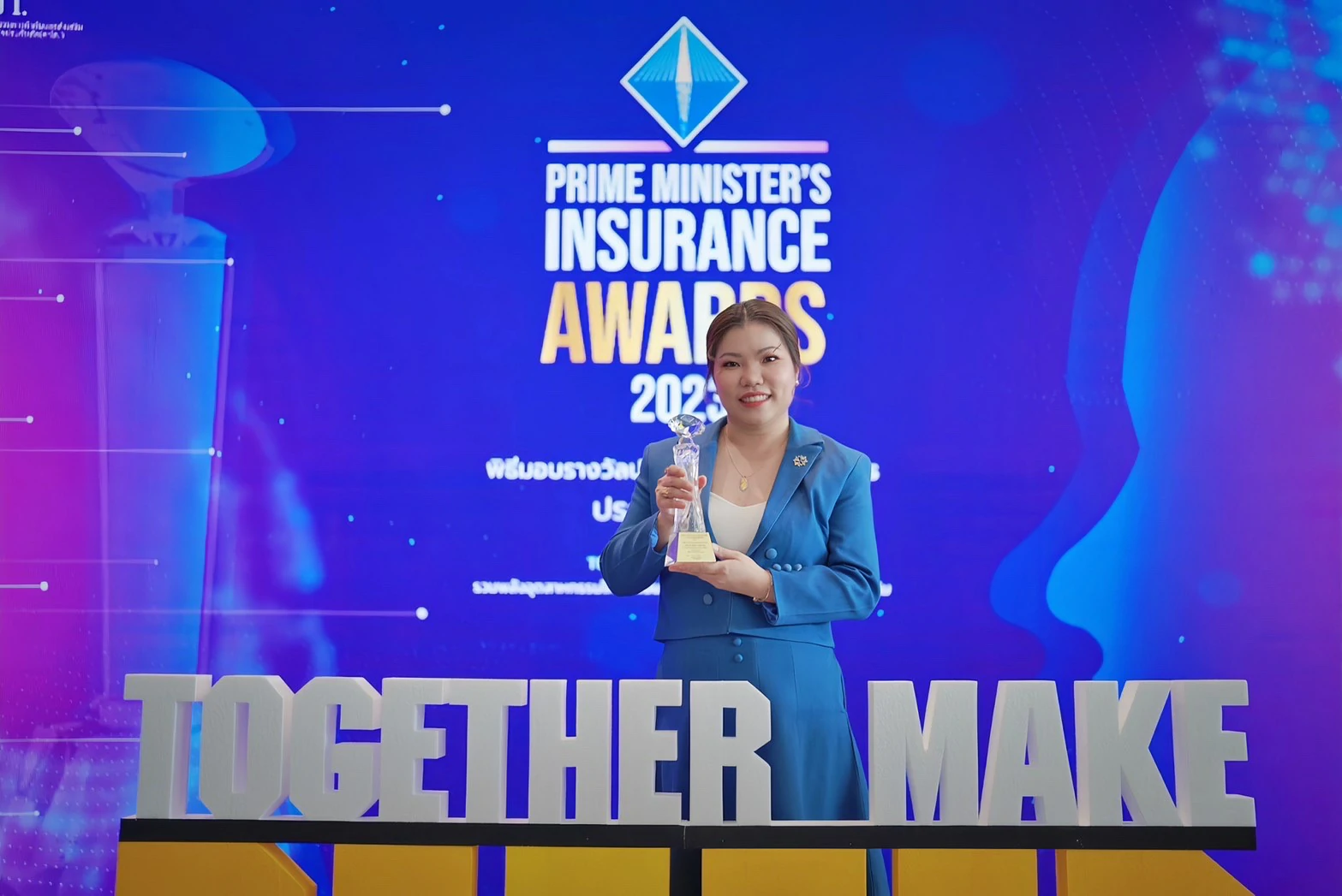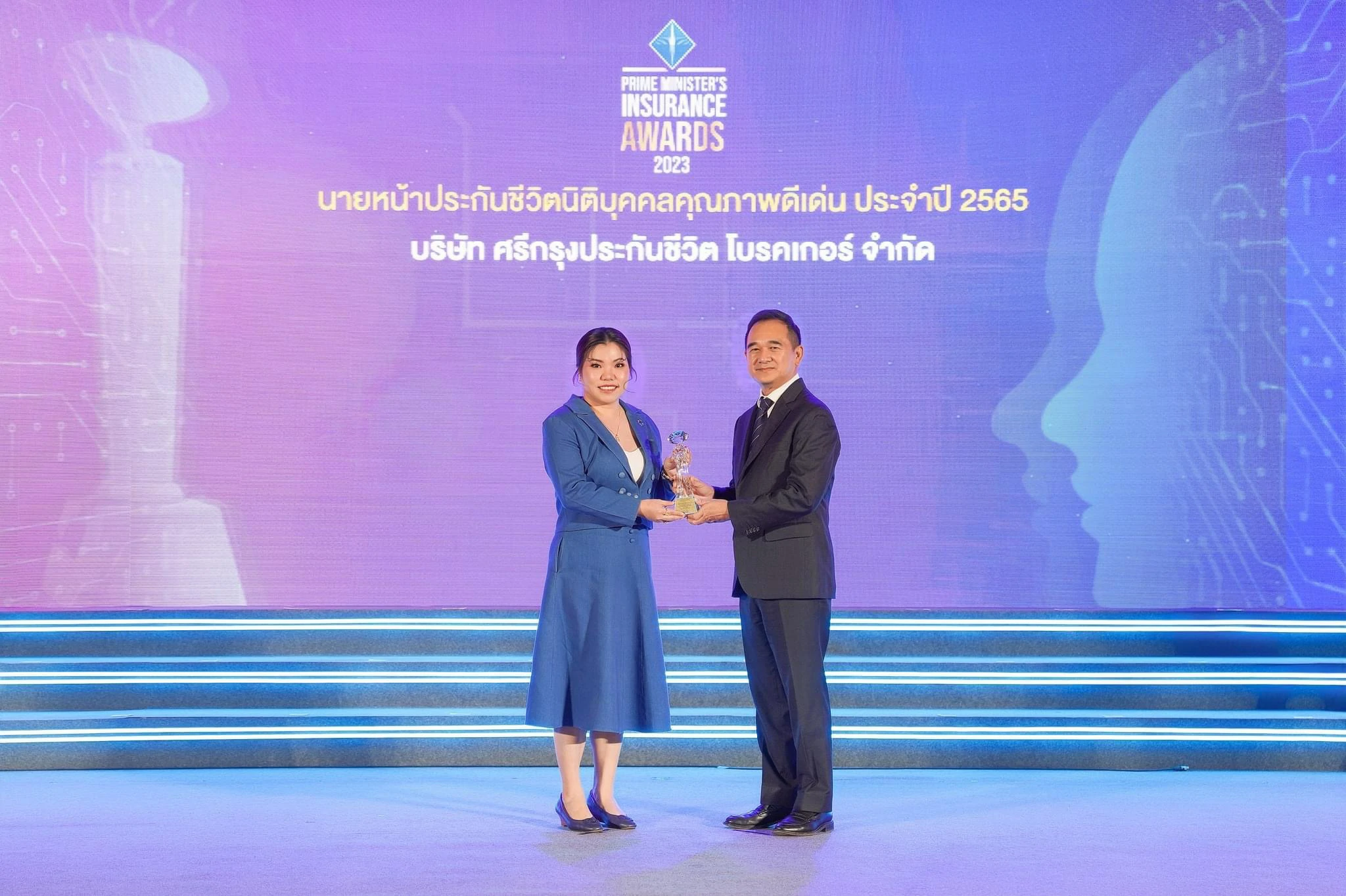วันที่ 8 กันยายน 2566 – คุณดวงสมร อรุณสวัสดี กรรมการผู้จัดการ บริษัท ศรีกรุงประกันชีวิตโบรคเกอร์ จำกัด เข้ารับรางวัล “นายหน้าประกันชีวิตนิติบุคคลคุณภาพดีเด่น ประจำปี 2565” เป็นปีที่ 3 ติดต่อกันใน “งานประกันภัยดีเด่นครบวงจร ประจำปี 2566 (Prime Minister’s Insurance Award 2023)” โดยมี คุณกฤษฎา จีนะวิจารณะ รัฐมนตรีช่วยว่าการกระทรวงการคลัง ประธานในพิธีเป็นผู้มอบรางวัล และ ดร.สุทธิพล ทวีชัยการ เลขาธิการคณะกรรมการกำกับและส่งเสริมการประกอบธุรกิจประกันภัย ร่วมแสดงความยินดี
