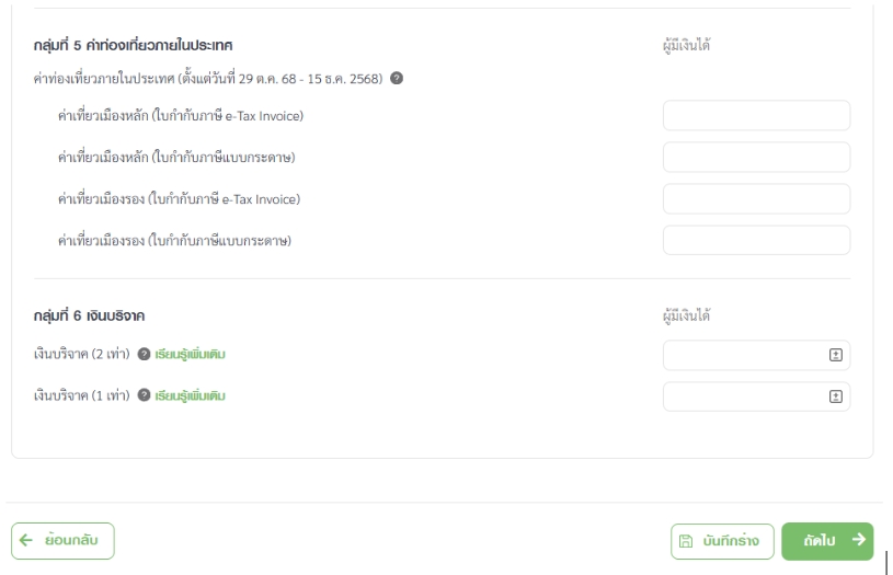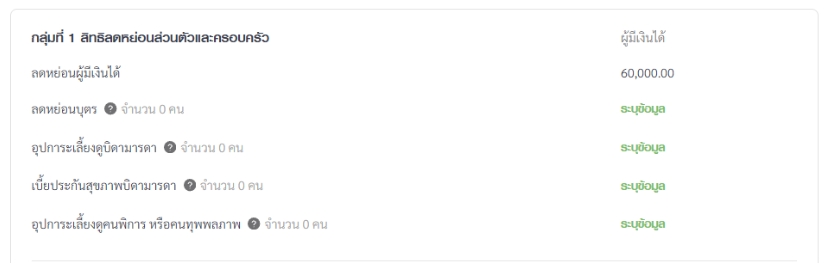 ในหน้านี้ ระบบจะให้คุณระบุสิทธิประโยชน์ต่างๆ เพื่อนำมาหักลบออกจากรายได้ ซึ่งจะช่วยให้ยอดภาษีของคุณลดลง หรือมีโอกาสได้เงินคืนมากขึ้น โดยแบ่งออกเป็นกลุ่มหลักๆ ดังนี้