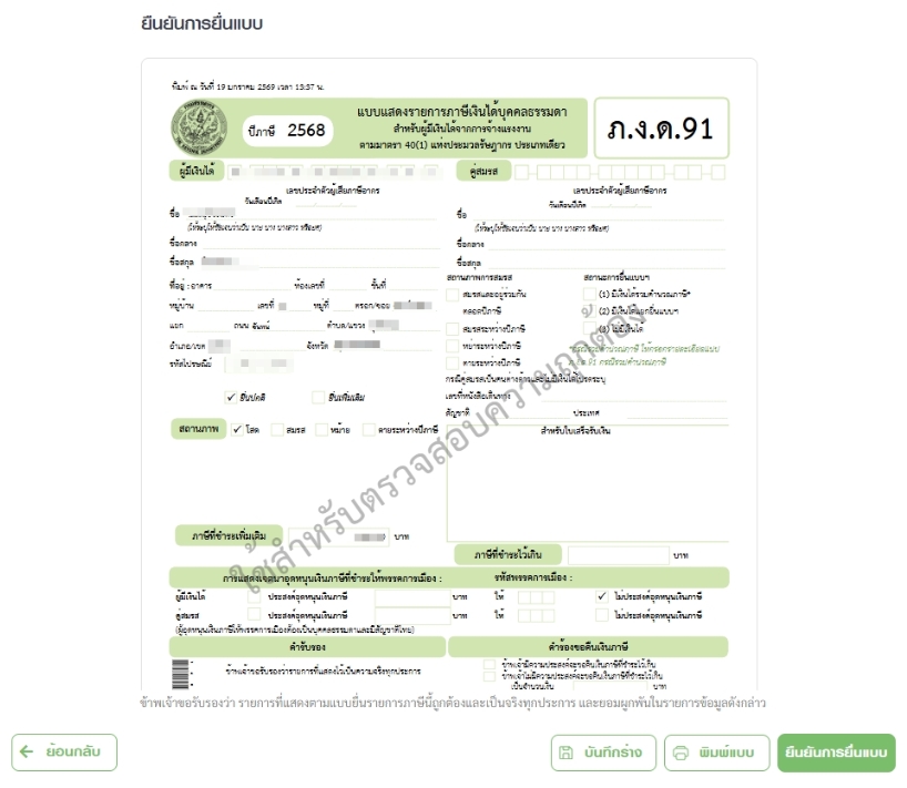 เมื่อตรวจสอบข้อมูลครบถ้วนแล้ว กด “ยืนยันการยื่นแบบ” เป็นอันเสร็จสิ้นขั้นตอนการยื่นภาษีเงินได้บุคคลธรรมดาผ่านช่องทางออนไลน์