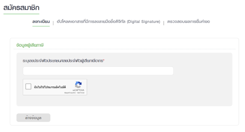 1.1 เลือกเมนู “สมัครสมาชิก” ในหน้าแรกของระบบ E-Filing ให้มองหาปุ่มสมัครสมาชิก เพื่อลงทะเบียนสร้างบัญชีผู้ใช้งานส่วนตัว
