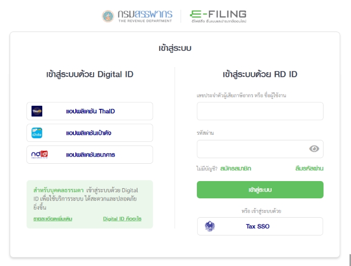 ขั้นตอนที่ 2 การเข้าสู่ระบบ E-filing ของกรมสรรพากร