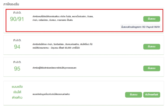 | เงินเดือนอย่างเดียว | 120,000 บาทขึ้นไป | 240,000 บาทขึ้นไป | ภ.ง.ด. 91 |