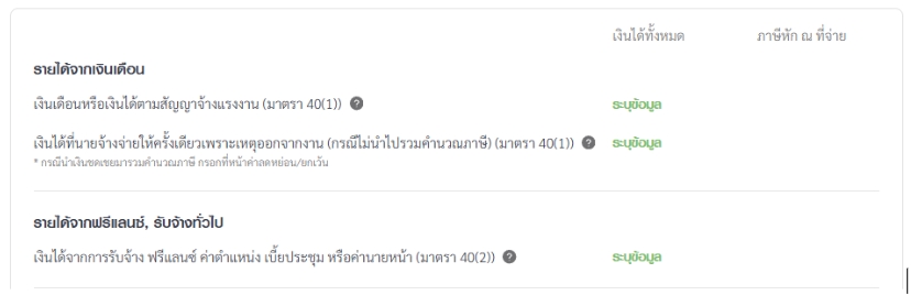 | ประเภทเงินได้ |