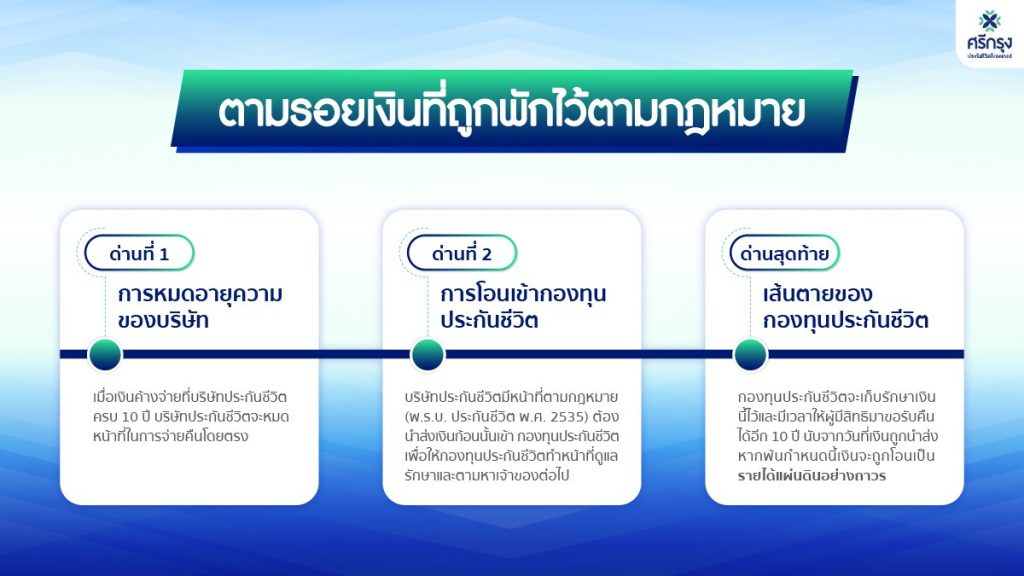 ด่านที่ 1 การหมดอายุความของบริษัท เมื่อเงินค้างจ่ายที่บริษัทประกันชีวิตครบ 10 ปี บริษัทประกันชีวิตจะหมดหน้าที่ในการจ่ายคืนโดยตรง